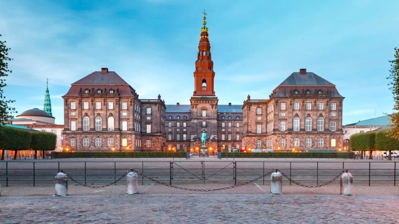 + Cung điện Christiansborg – chụp hình bên ngoài cung điện hoàng gia có lịch sử hơn 800 năm, hiện là nơi tổ chức yến tiệc ưa thích của Nữ hoàng Elizarbeth II.