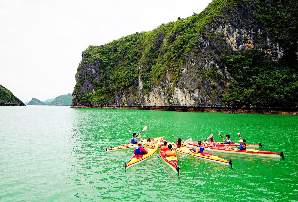 06:50 Tiếp tục hành trình đi thăm quan hang Sáng Tối bằng thuyền nan hoặc Kayak.