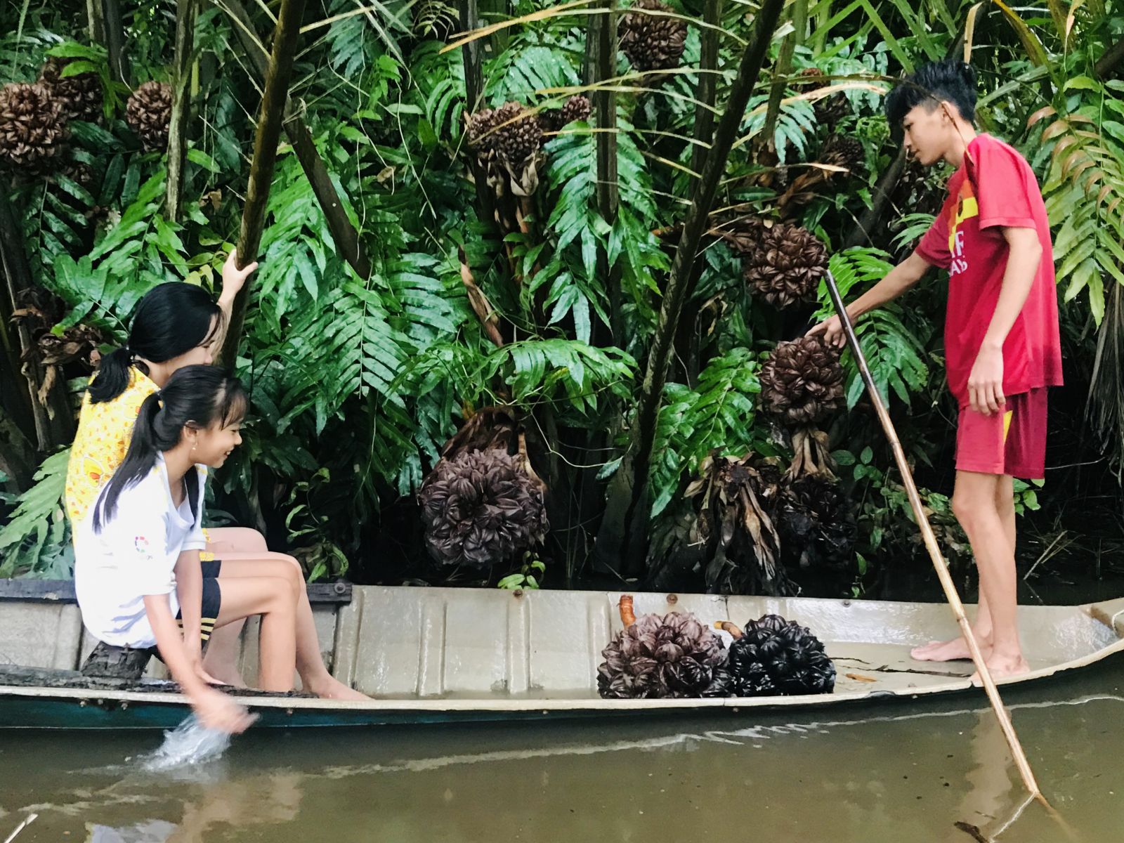 - Ngồi xuồng ba lá tham quan rặng dừa nước xanh mát