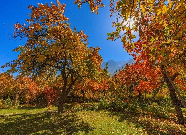 - Thung lũng Hopar với vô số vườn cây chuyển lá vàng đỏ rực rỡ