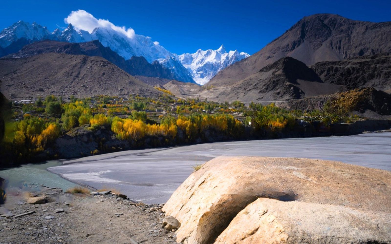 - Junction of the Three Mountain Ranges – là ngã ba của ba dãy núi hùng vĩ. Karakoram, Himalaya và Hindu Kush hội tụ, tạo nên một khung cảnh hiếm thấy trên thế giới. Tại đây, du khách có thể chiêm ngưỡng toàn cảnh núi non trùng điệp, thung lũng xanh và dòng sông uốn lượn. Đến đây du khách sẽ nhận ra sự tương phản rõ rệt giữa những ngọn núi hiểm trở và những thung lũng với dòng sông thanh bình tạo nên khung cảnh ngoạn mục không thể bỏ qua.