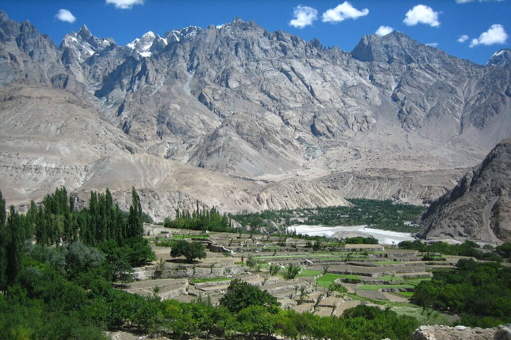 - Làng Barah - Tọa lạc giữa thung lũng xanh mướt của khu vực Khaplu, làng Barah mang vẻ đẹp yên bình với phong cảnh núi non hùng vĩ bao quanh. Ngôi làng nổi tiếng với những thửa ruộng bậc thang, rừng cây rậm rạp và dòng sông băng uốn lượn tạo nên khung cảnh nên thơ, rất lý tưởng cho các điểm dừng chụp ảnh. Khi ghé thăm Barah, du khách sẽ cảm nhận được nhịp sống chậm rãi của người dân Baltistan, tìm hiểu nét văn hóa bản địa giữ nguyên vẹn qua nhiều thế hệ – từ kiến trúc nhà đá đặc trưng đến phong tục sinh hoạt truyền thống.