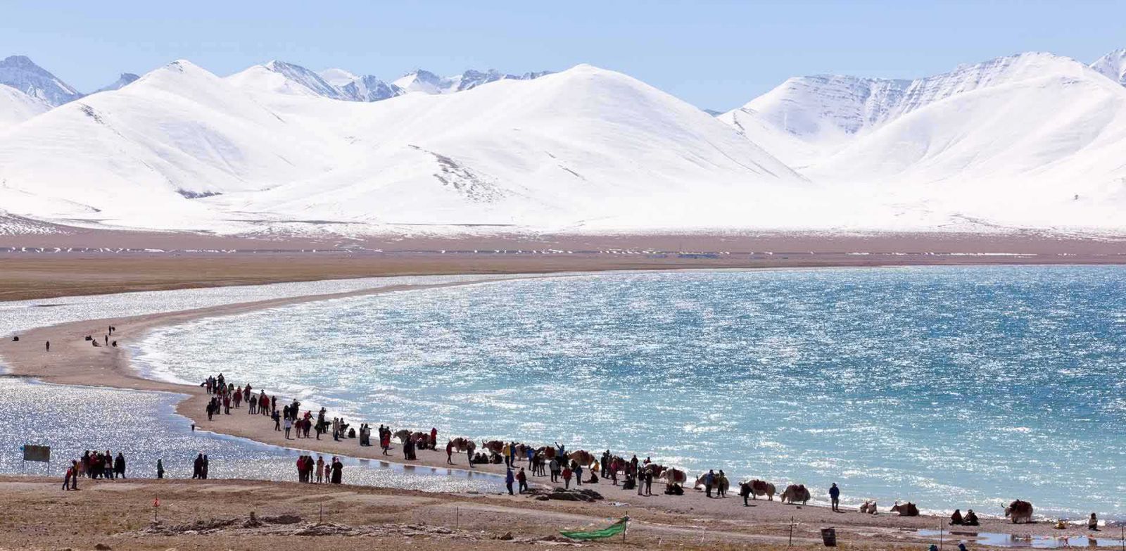 + Thánh Hồ Yamdrok (Hồ Dương Trác Ung) - Được xem là 1 trong 3 hồ linh thiêng của Tây Tạng. “Yamdrok” trong tiếng Tạng có nghĩa là “hồ thiên nga”. Tương truyền thánh hồ này là hóa thân của Long nữ – nữ thần bảo hộ cho người dân Tây Tạng. Nếu ai đến Thánh hồ Yamdrok thành tâm cầu nguyện và chạm tay vào nước Thánh hồ sẽ được tiêu trừ nghiệp chướng từ nhiều đời nhiều khiếp. Xe dừng lại ở đỉnh đèo núi Gangbala thơ mộng ở độ cao hơn 3800m, Quý khách tham quan và chụp hình lưu niệm cảnh Hồ Yamdrok từ trên cao. Xe tiếp tục men theo xuống Hồ Yamdrok - hồ rộng 600 km2, nằm trên rặng núi Kampala cao 5000m, mặt hồ so với mặt nước biển chênh nhau khoảng 4441m, cách thủ phủ Lhasa hơn 100 km. Hồ xanh như màu nước biển, màu xanh của hồ Yamdrok sẽ làm kinh ngạc du khách bởi sắc màu huyền diệu "không giống ai" của nó. Bức tranh lung linh huyền ảo ấy như khiến bạn đang lạc vào chốn bồng lai tiên cảnh, một vẻ đẹp lạ thường, nguyên sơ và tinh khiết. Quý khách có thể trải nghiệm cưỡi bò Yak ngắm cảnh hồ.