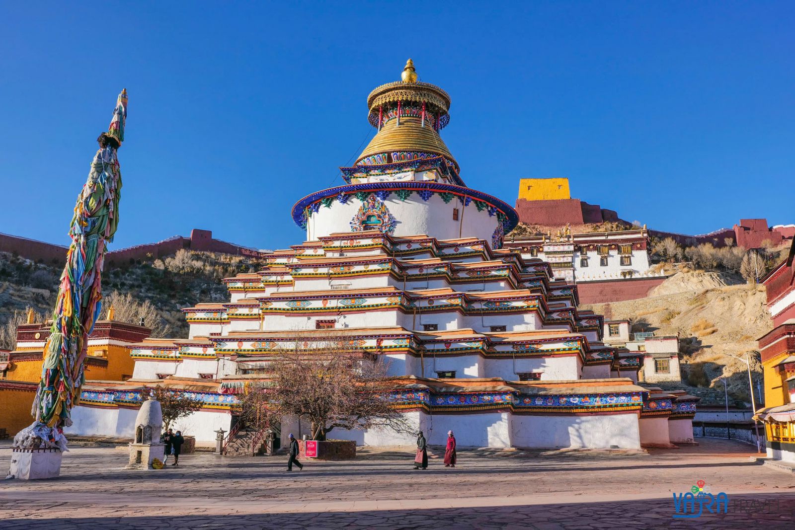 + Chùa Bạch Cư (Palkor) - Được xây dựng vào thế kỷ XV, nổi tiếng với tháp Kumbum – công trình kiến trúc Phật giáo độc đáo gồm nhiều tầng với hàng trăm bức bích họa và tượng Phật