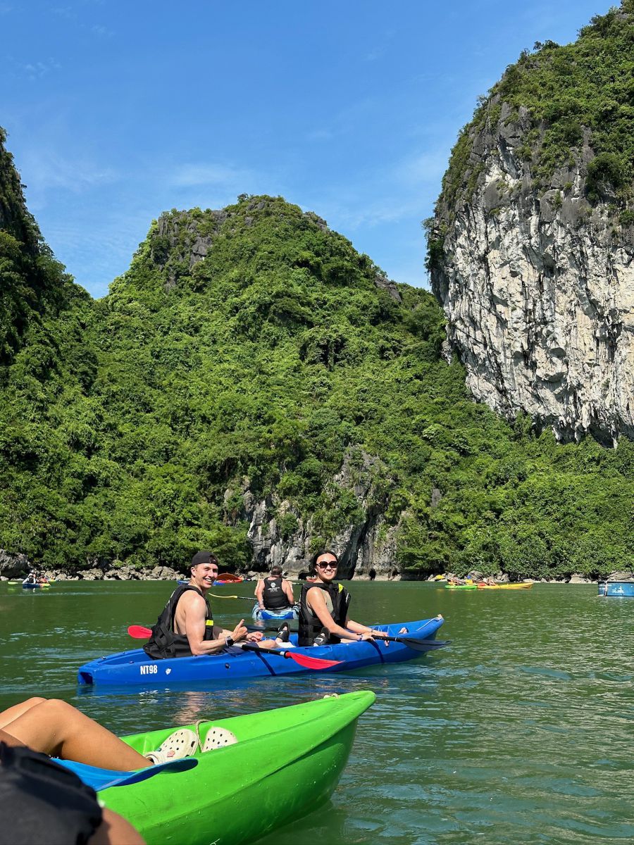 12:45 – 14:00: Savor a buffet lunch whilst enjoying the majestic views of the World Natural Wonder, Halong Bay limestone islets.
