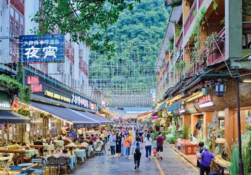 + Thiên hộ Miêu Trại (Bao gồm xe điện) – Ngôi làng của người Miêu được đánh giá là lớn nhất thế giới với khoảng 1.300 ngôi nhà được làm bằng gỗ ở lưng chừng núi. Nét độc đáo và quyến rũ riêng của Thiên Hộ Miêu Trại là những ngôi nhà bằng gỗ sơn màu vàng, nâu, san sát nhau trên sườn núi, quay mặt ra sông Baishui. Đoàn có thể lên đài quan sát ngắm cảnh đêm thành phố.