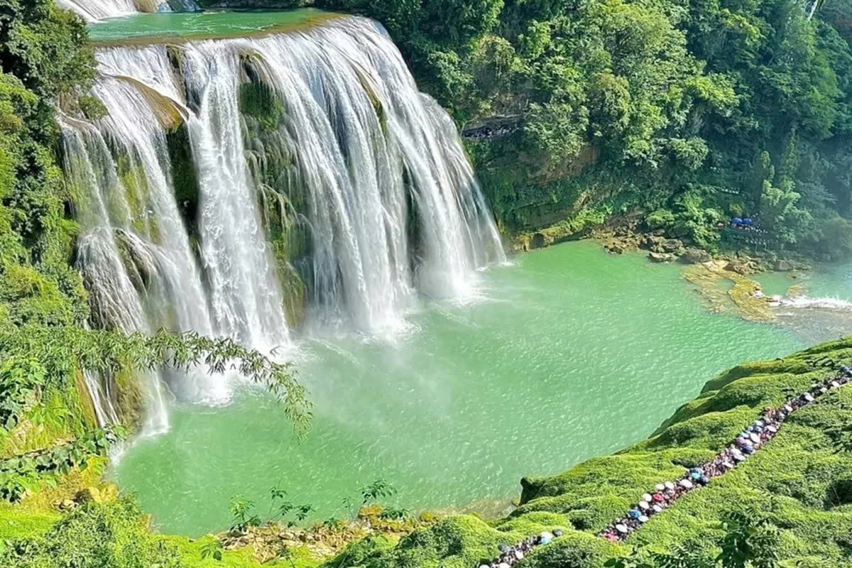 + Thác Hoàng Quả Thụ – Đây là địa danh từng là bối cảnh phim Tây Du Ký phiên bản 1986. Thác nước Hoàng Quả Thụ có độ cao 77.8m, trong đó thác chính cao 67m; rộng 101m, đỉnh thác chính rộng 83.3m. Với sự đồ sộ, hùng vĩ và dòng nước chảy mạnh quanh năm, thác Hoàng Quả Thụ được mệnh danh là Thiên Hà (dòng sông trời). Đây không chỉ là thác nước đệ nhất ở Trung Quốc mà còn là thác nước lớn nhất ở châu Á.