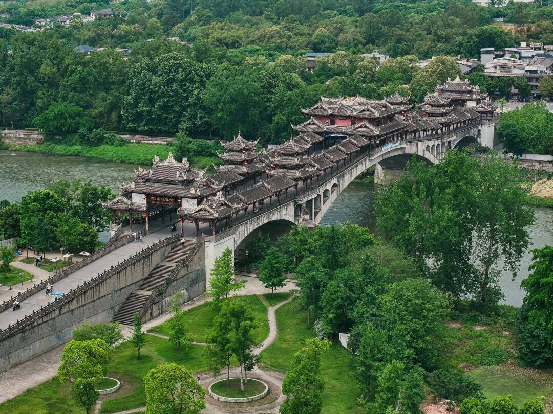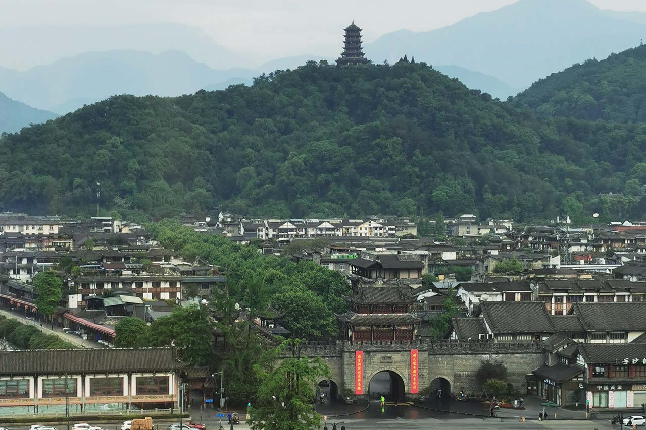 - Cổ trấn Quán Huyện - Nằm bên cạnh công trình thủy lợi cổ Đô Giang Yển, đây là cổ trấn có lịch sử lâu đời, từng là trung tâm giao thương sầm uất của vùng Tứ Xuyên. Du khách tản bộ trên những con phố cổ lát đá, tham quan Cầu Nam Kiều bắc qua sông, các công trình cổ kính và dãy cửa hàng truyền thống.